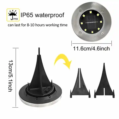 5. Solar light lasts up to 7-10 hours when fully charged, also could use batteries.