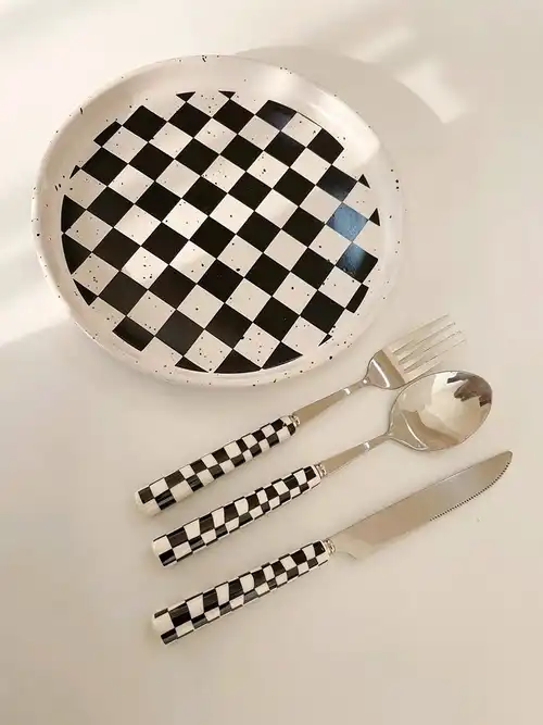 Upgrade your dining experience with our modern checkered flatware set. Made from high-quality stainless steel, this 6-piece silverware set is perfect for any occasion. The unique checkered pattern & vibrant colors on the handles adds a touch of style and cheerfulness to your table setting.
