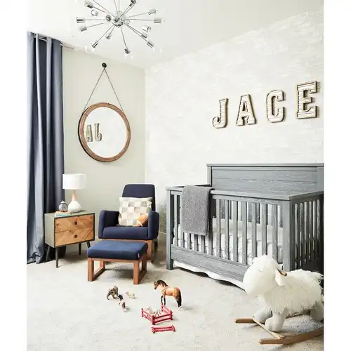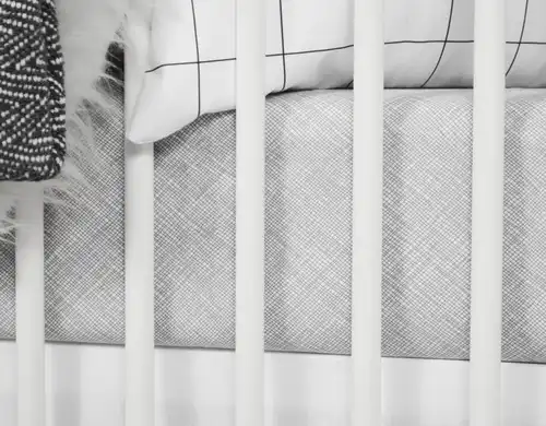 The Classic Avi Crib Bedding set has modern and neutral tones throughout the collection. A controlled subtle design with neutral lines throughout that set on a style friendly background, allow baby and the room to shine. Handcrafted in the USA.