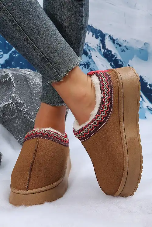 Chestnut Suede Contrast Print Plush Lined Snow Boots