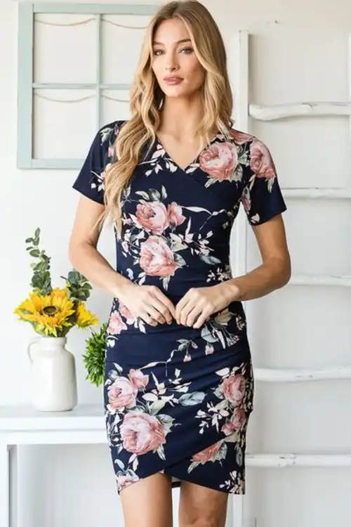 Heimish Full Size Ruched Floral Mini Dress Plus Size