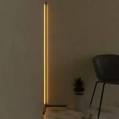 Lamp Depot Corner Lamp is a beautifully designed, space-saving lamp that fits perfectly in corners for your living room, dining room, bedroom, guest room, or office. This minimalist lamp features soft-white, integrated LEDs that will provide hours of customized illumination. The easy to use remote control makes it simple to shuffle through 16+ million colors and 300+multi color effects to find your perfect lighting. Complete with quality metal finishes and a weighted rubber bottom to ensure safe placement, this high end design will make a big impact without dominating your space.