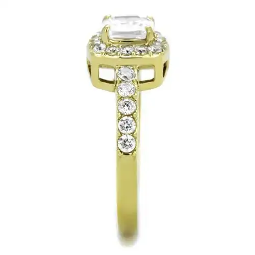 Women, Ring, Stainless Steel, IP Gold(Ion Plating), Cubic Zirconia, Clear